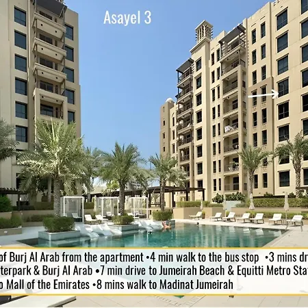 Die 72 m^2 große Ferienwohnung 1Bd Partial Burj Al Arab View Prime Location Dubai liegt im Bezirk Umm Suqeim von Dubai und bietet seinen Gästen WLAN und kostenlose Privatparkplätze. Burj al Arab ist ungefähr 16 Fußminuten von der Unterkunft entfernt, und Kunstviertel Alserkal Avenue ist in etwa 3 km Entfernung von diesem Apartment.